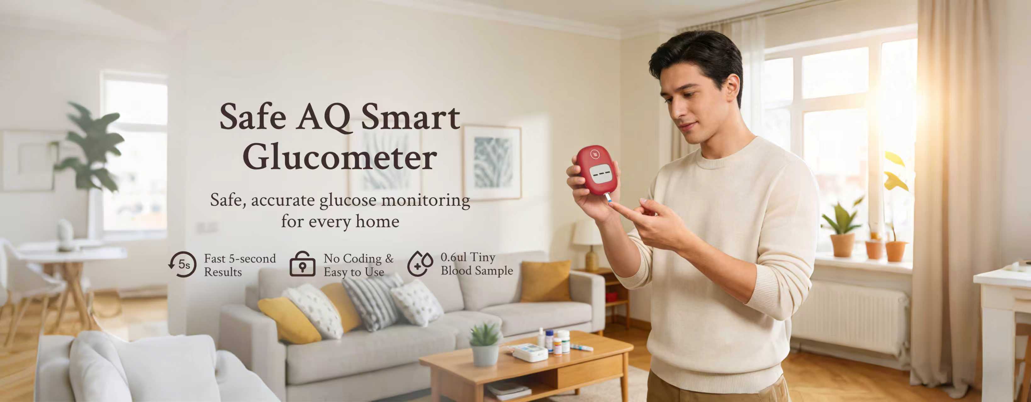 Sinocare Safe AQ Smart Blood Sugar Monitor – Portable, No Coding, Painless Diabetic Test Kit